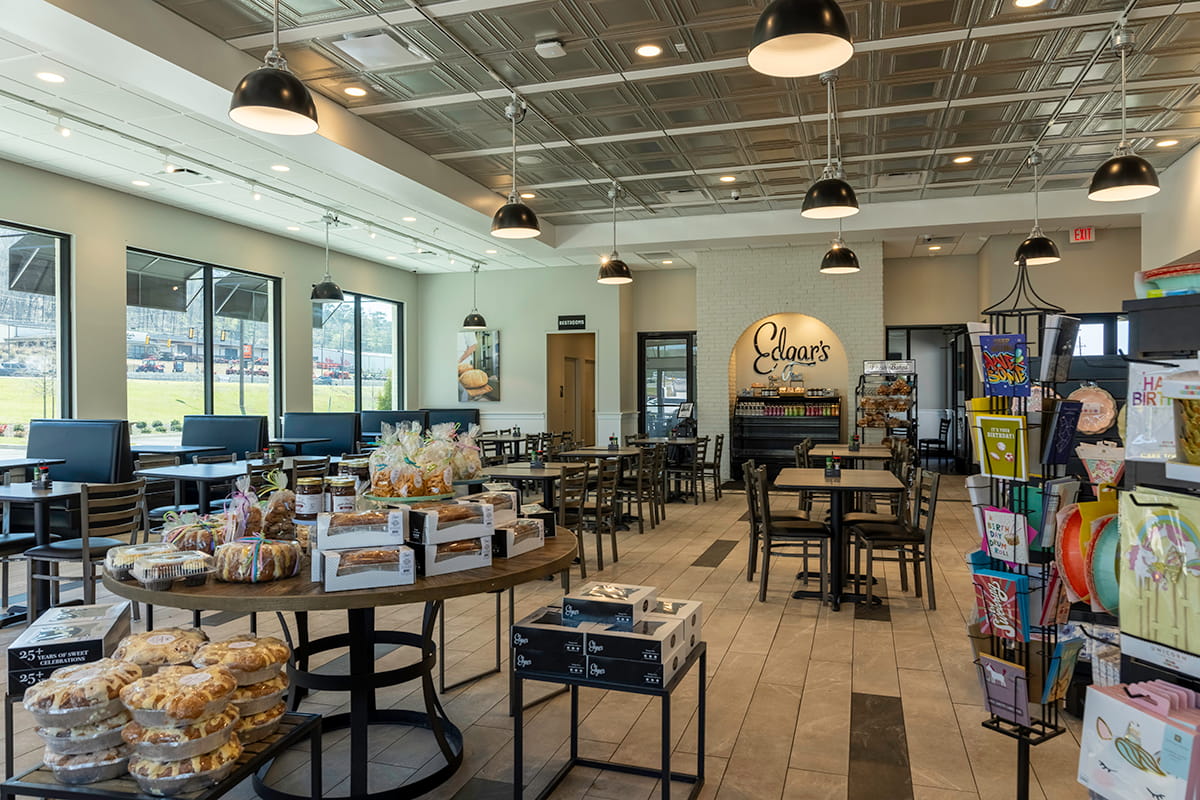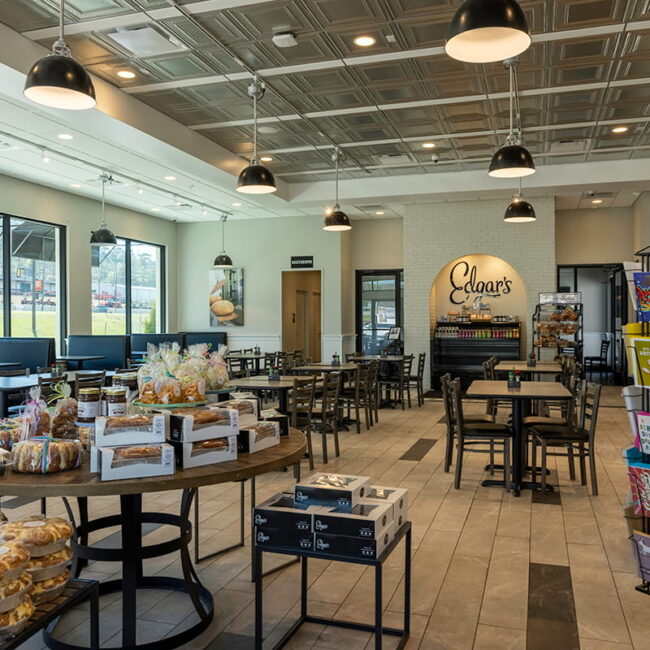 Edgar’s Bakery continues to grow its presence across Alabama, bringing its beloved baked goods, café experience, and welcoming atmosphere to even more communities. Their Pelham location needed a space that reflected the heart of the Edgar’s brand while also supporting efficient daily operations and a smooth customer experience. KFP Construction was entrusted with the build-out, creating a bakery café that blends Southern charm, thoughtful design, and practical functionality.