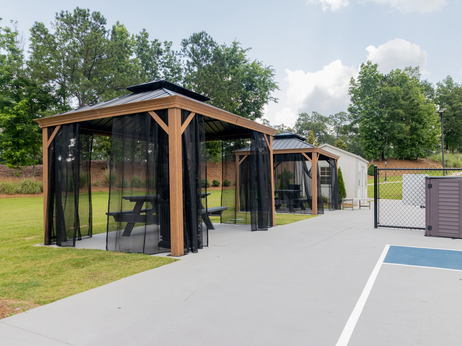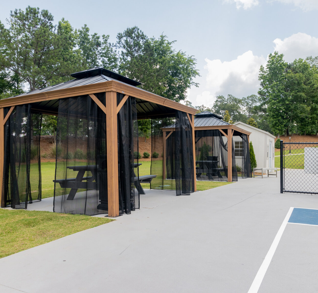 Adjacent to the courts, we built a regulation-size basketball court designed for both casual play and community events. To complement the active spaces, we designed and constructed custom pavilions, offering shaded seating and gathering areas for players and spectators alike.